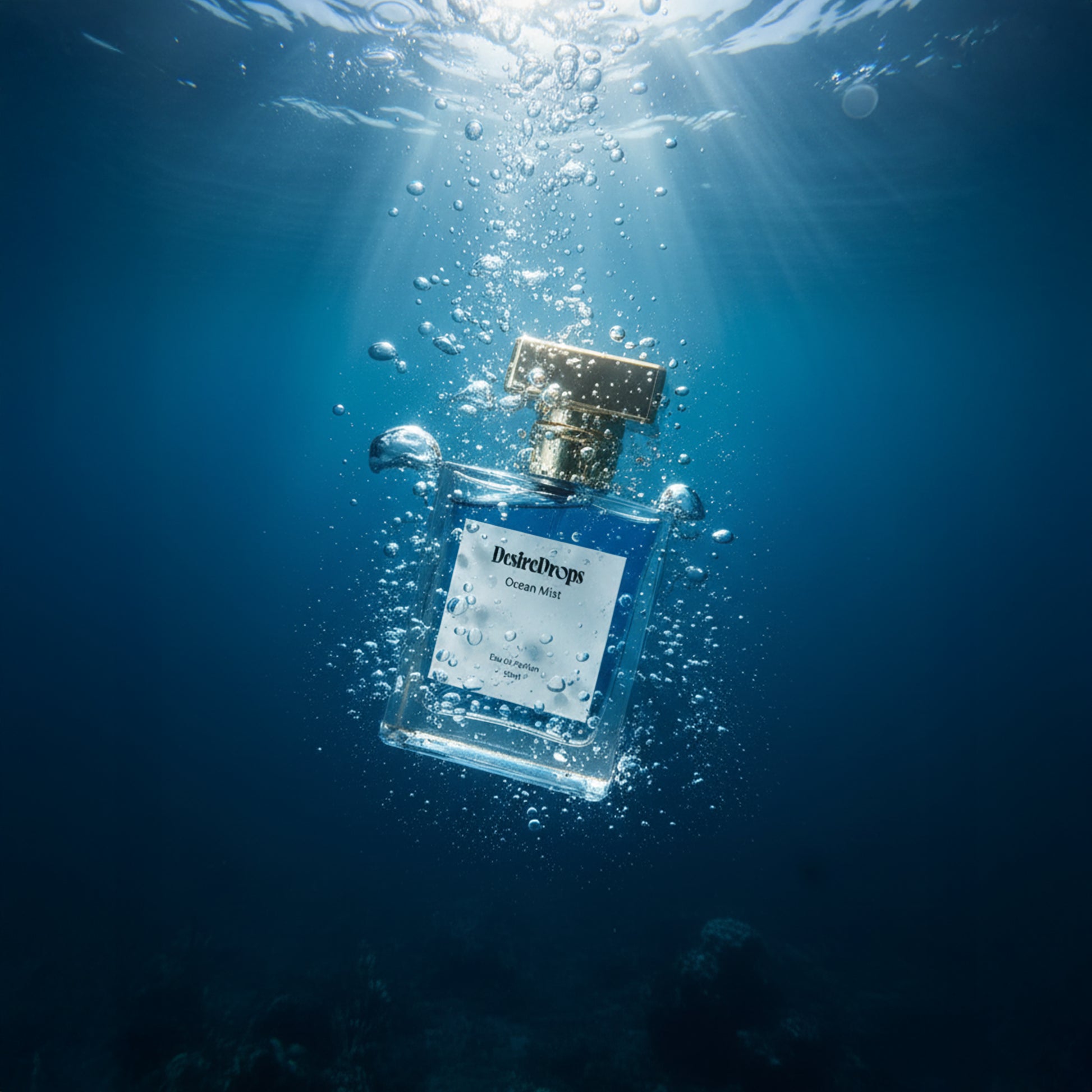 Ocean Mist, the men's fragrance crafted for the man who is as powerful as the sea and as calm as the horizon. Ocean Mist is a visual statement of contemporary elegance and masculine confidence. The vibrant blue liquid hints at the deep, cool, and mysterious notes within, promising an unforgettable journey.